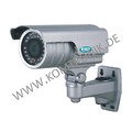 - Durch Infrarot-LEDs in der Dunkelheit einsetzbar, dazu schaltet die Kamera auf S/W-Betrieb um